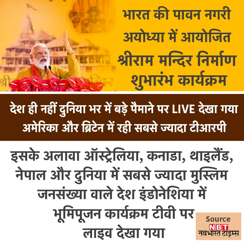 भारत की पावन नगरी अयोध्या में आयोजित श्रीराम मन्दिर निर्माण शुभारंभ कार्यक्रम देश ही नहीं दुनिया भर में बड़े पैमाने पर LIVE देखा गया